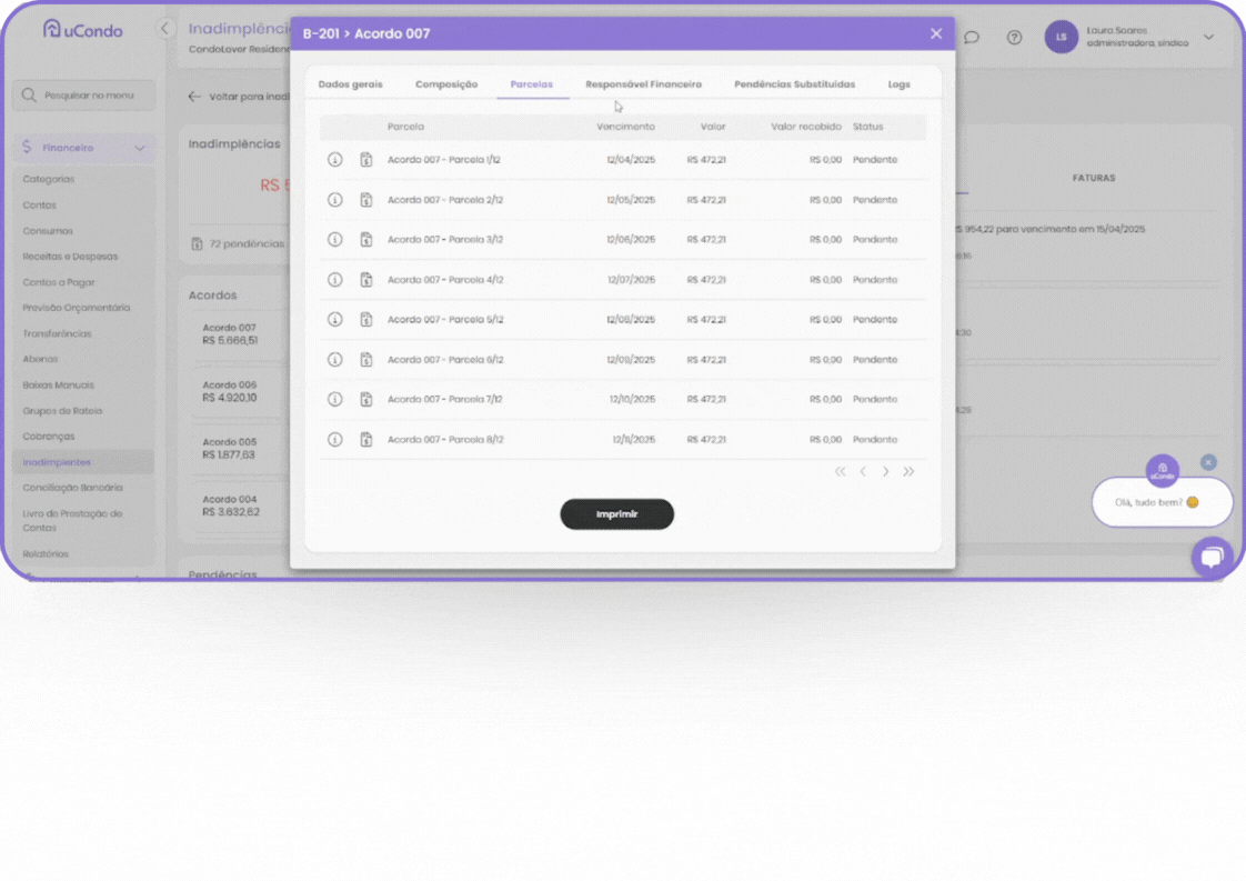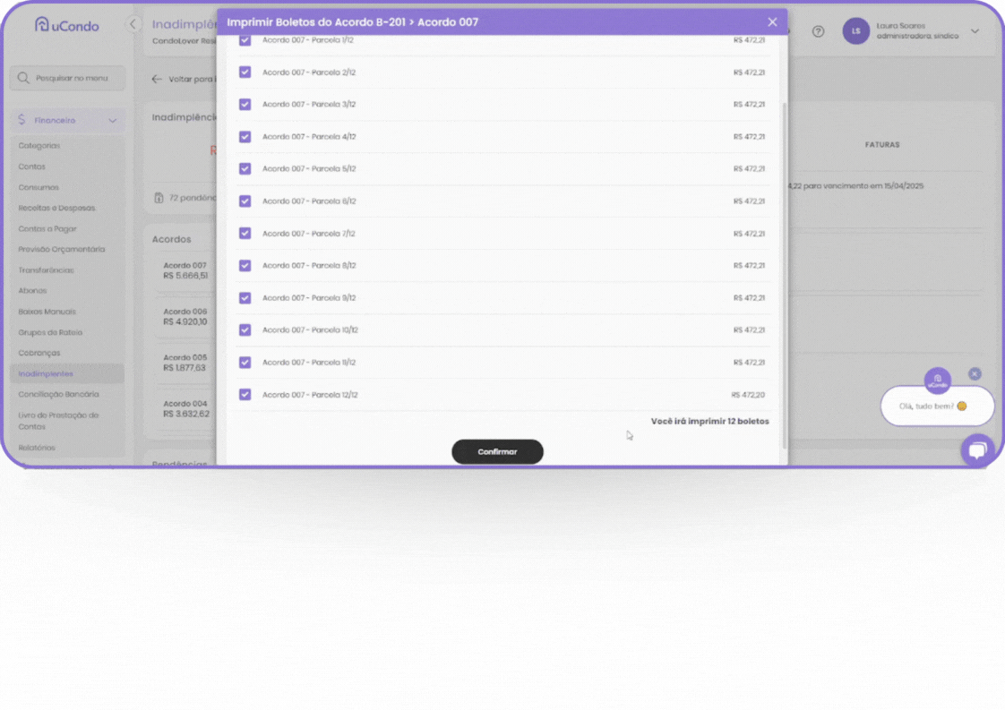 No sistema uCondo, agora é possível visualizar e baixar todas as parcelas de um Acordo de uma só vez. Essa funcionalidade elimina processos burocráticos e economiza tempo, garantindo mais eficiência para a gestão financeira do condomínio.